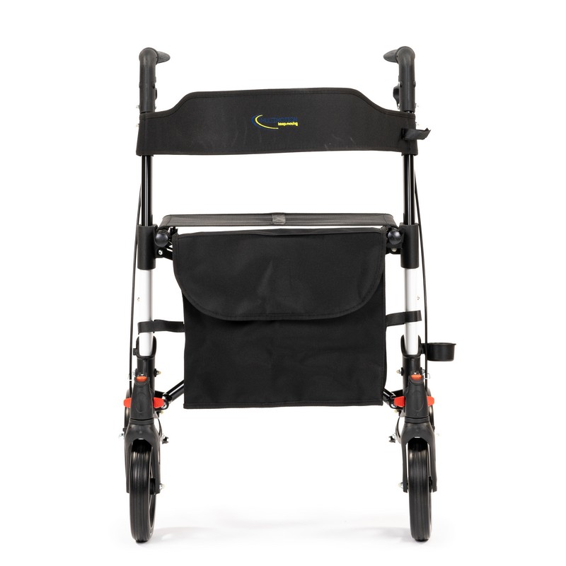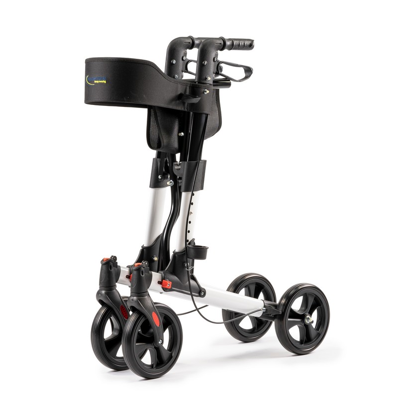 Dubbel opvouwbare rollator van slechts 6,9 kg. Lichtgewicht, compact en voorzien van tas, stokhouder en lekvrije banden.