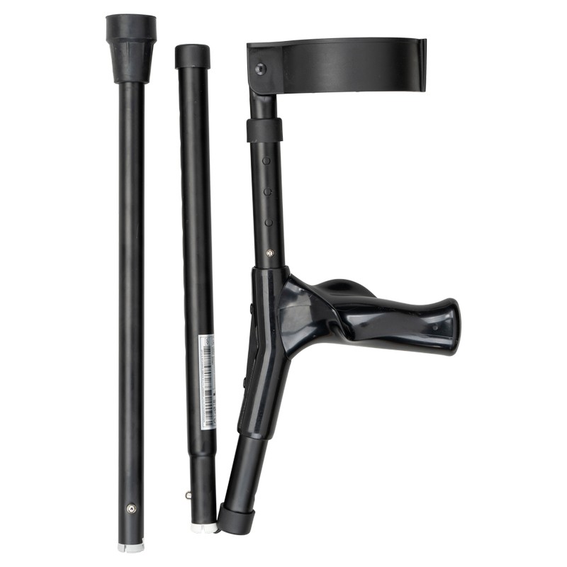 De krukken zijn dubbel in hoogte verstelbaar: het onderste deel voor de hoogte van het handvat, en het bovenste deel voor de positie van de manchet. De gesloten manchet biedt extra stabiliteit, en met het kliksysteem stelt u de krukken eenvoudig op maat af. Verkrijgbaar in vijf kleuren: zwart, blauw, rood, roze en standaard grijs. De elleboogkrukken worden geleverd per set: 1 voor links en 1 voor rechts.
