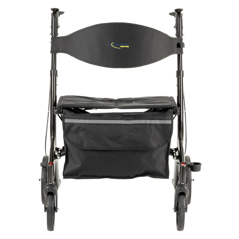 Heavy-duty rollator belastbaar tot 200 kg. Met extra brede rugband en een zitting van 55 cm. Licht voor zijn klasse: 9,6 kg.