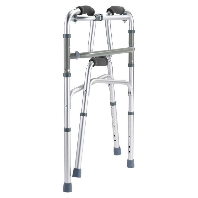 Dit lichtgewicht aluminium looprek is voorzien van handige extra functies, zoals een sta-op ondersteuning en een loopfunctie. Onder de handvatten bevinden zich twee extra steunen die gebruikers ondersteunen bij het opstaan uit een stoel. De in hoogte verstelbare handvatten (72 – 90 cm) zorgen voor een comfortabele houding. Dankzij de geïntegreerde loopfunctie beweegt het frame mee met de loopbeweging. Indien gewenst is deze functie uit te schakelen met meegeleverde vergrendelclips.